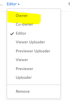 2. Verify the potential new owner of the folder (jjohnson) is already a collaborator at any level. If not, jdoe would need to invite jjhonson to be a collaborator on the folder.