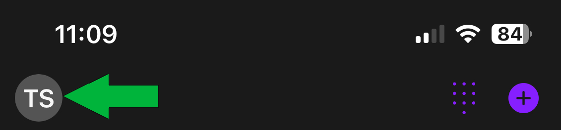 - Select your profile icon (initials) in the top left corner then "Settings."