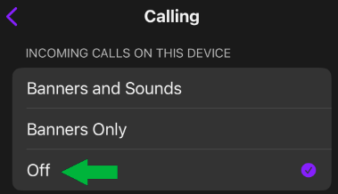 - In "Calling" select "Off" under "Incoming calls on this device."