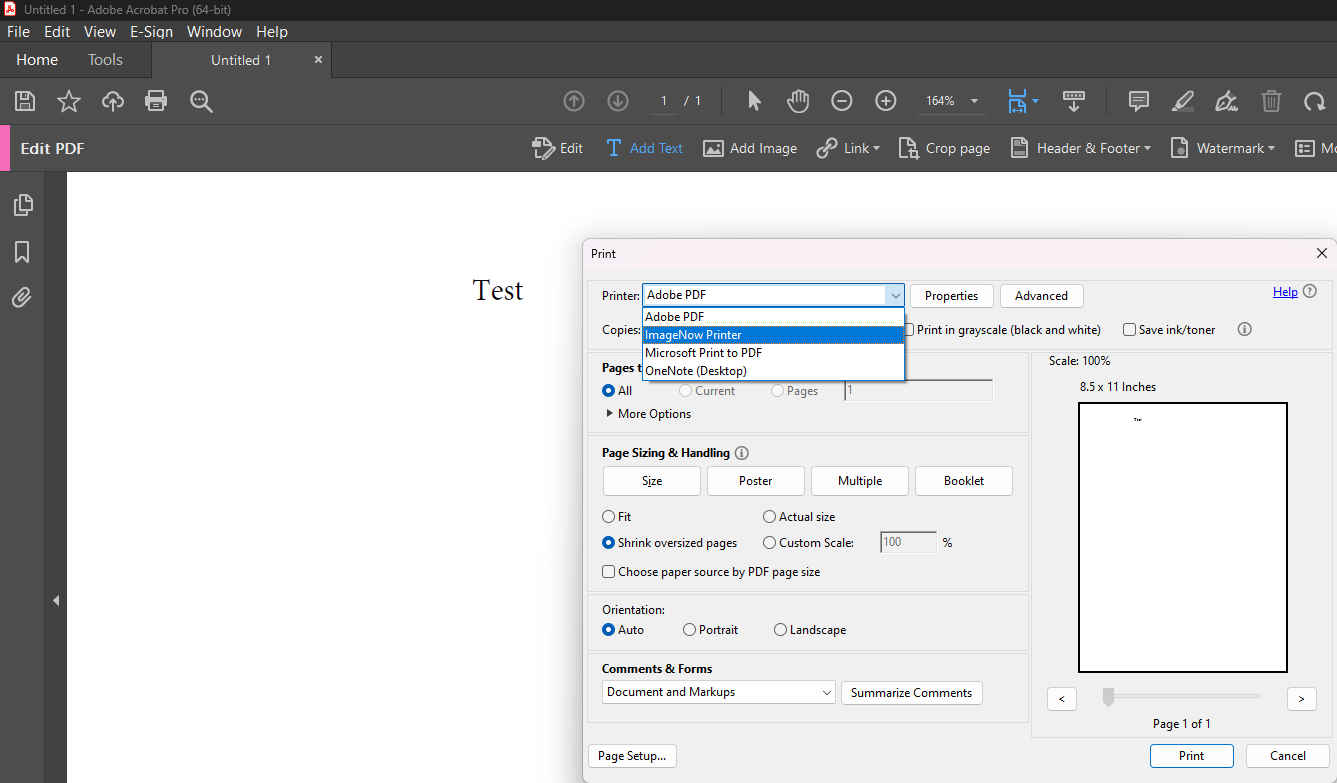 4. In the printer dropdown menu, choose ImageNow Printer then click the Print button.